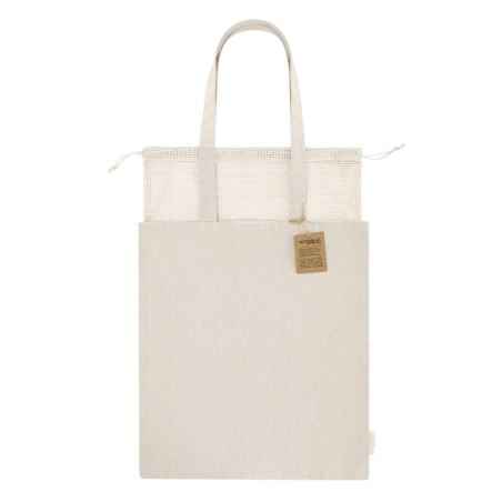 Bolsa Flerix: potencia tu marca con un artículo promocional pensado para destacar. Bolsa Flerix. Bolsa fabricada principalmente en algodón reciclado de 260 g/m2 con sistema de cierre superior a cordones, fabricado en redecilla. Asas largas de 70cm con refuerzo, de acabado cosido. Logotipo en etiqueta lateral y resistencia hasta 8 kg de peso Fabricado en algodón. Medidas/Capacidad: 70 cm, 260 g. Personalízalo con tu logotipo para eventos, merchandising corporativo o campañas de fidelización.