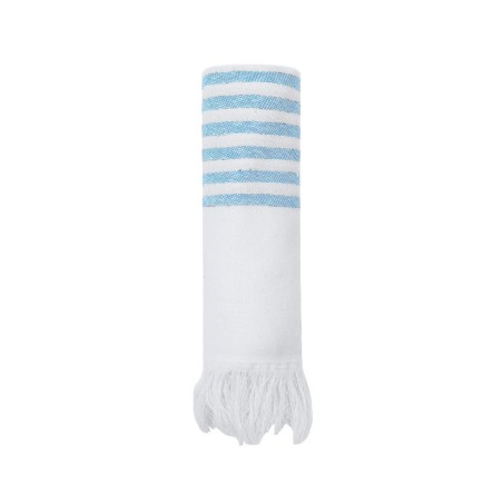 Pareo Toalla Tirling: potencia tu marca con un artículo promocional diseñado para destacar. Pareo Toalla Tirling. Suave pareo-toalla de 300 g/m², confeccionado en una combinación de algodón reciclado y poliéster reciclado SEAQUAL.Su diseño presenta una base en blanco combinada con rayas de color y decorada por distinguidos flecos en los extremos. Incluye etiqueta con…